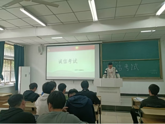 主题班会落实思想引领。公司各年级分头开展主题班会,辅导员、班主任等参与班会,并在会上强调,严肃考风考纪,坚持诚信考试,严格遵守考场纪律。