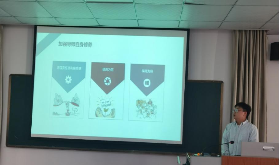 会上,孙玉蝶等七位参加网络培训的导师分别进行了学习心得分享发言,大家分别围绕着如何做好一名合格的导师、如何构建良好的师生关系、学术不端预防及处理、立德树人为国育才等方面内容进行了分享交流。