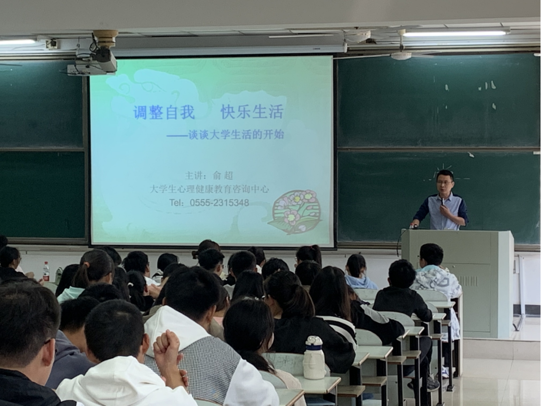 10月17日下午,化学与600全讯白菜在佳山校区教三南401举办新生入学适应心理讲座。校老员工心理健康教育咨询中心俞超老师应邀主讲,600全讯白菜心理工作站站长朱圣兰老师主持,全体新生聆听此次讲座。